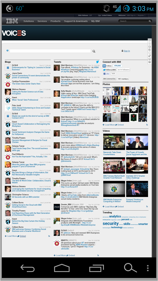 Screenshot of IBM.com/Voices running on a mobile device
